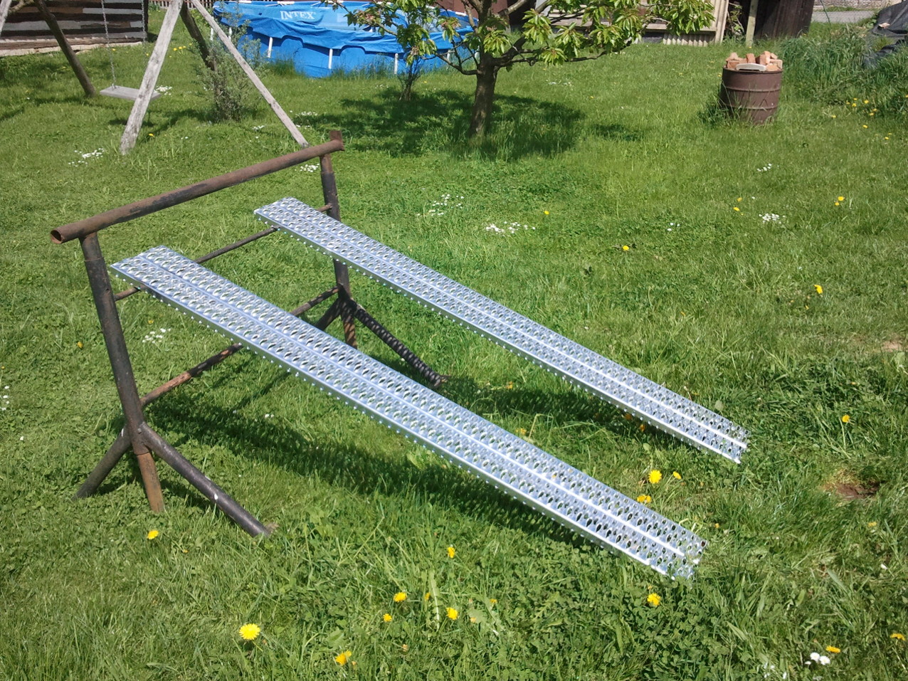 Nájezdy na zahradní traktůrek pro zjednodušení čištění po sečení.